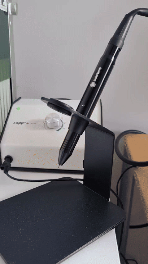 Hiermee kan ik van alles graveren in metaal. Van zelfgeschreven tekst tot foto’s tot vingerafdrukken. Je kunt het zo gek niet verzinnen.