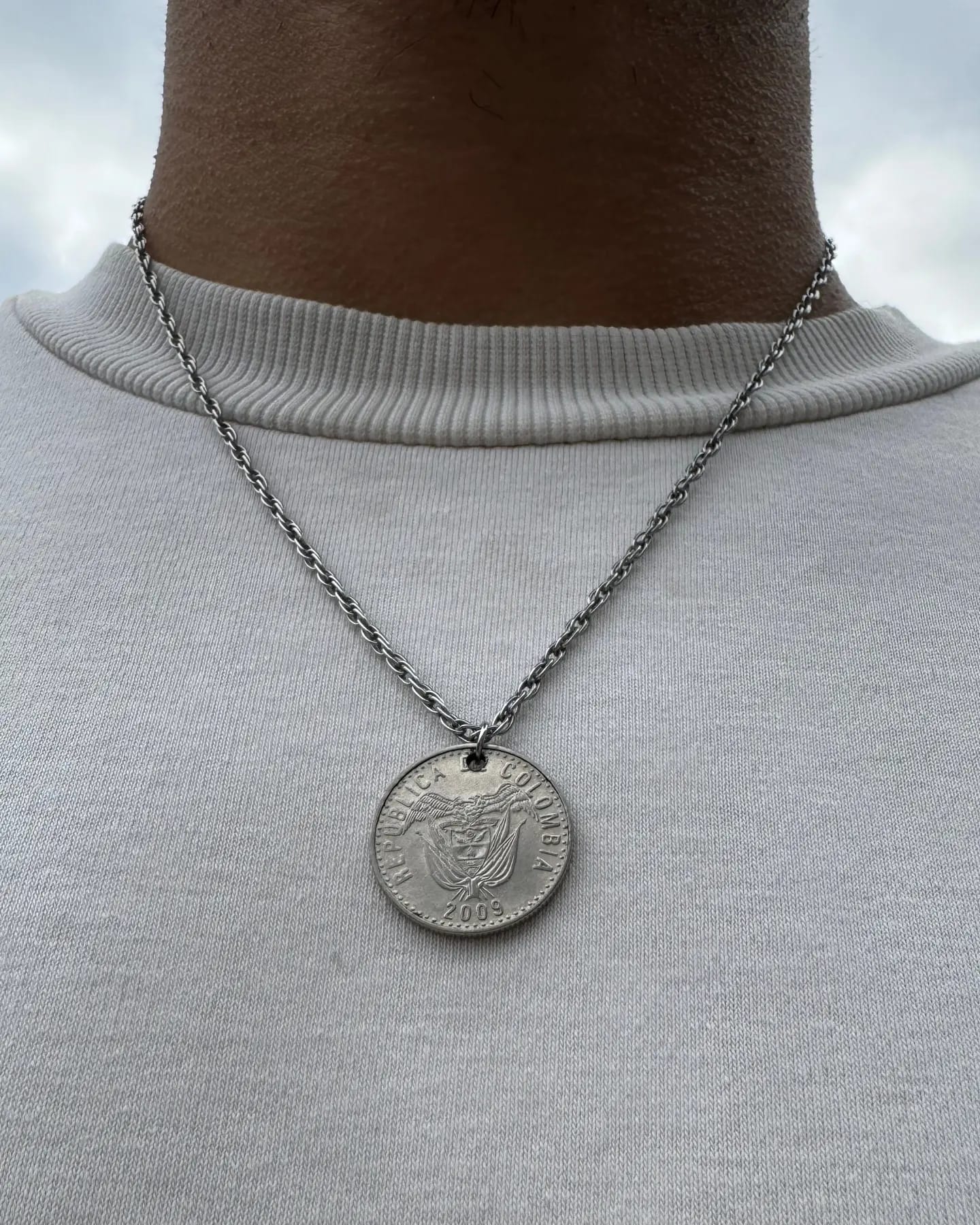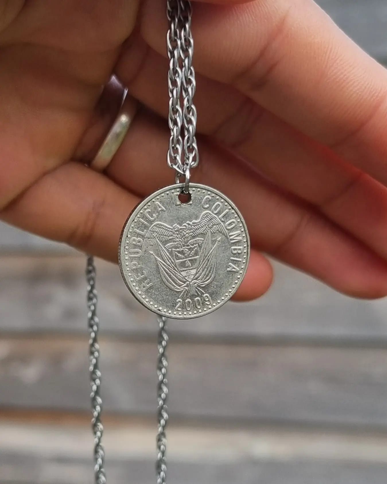 Stel je voor, de pracht om je ketting te verrijken met authentieke munten uit het hart van Colombia! Dit unieke sieraad markeert een bijzonder moment, want het verenigt een echte munt met onze ketting, waar geschiedenis en stijl samenkomen. Deze munten dragen verhalen van verre reizen en levendige ervaringen in zich, misschien zelfs meer dan wij ooit zullen kennen. Met zorg zijn ze opgepoetst en gepolijst, klaar om opnieuw te schitteren en te stralen in een nieuw hoofdstuk van hun bestaan.