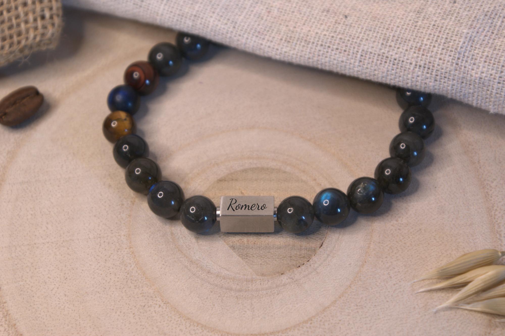 “Patria” betekent vaderland in het Spaans en staat symbool voor de trots en verbondenheid met Colombia. De labradoriet weerspiegelt de natuurlijke rijkdom van het land, terwijl de gekleurde kralen de vlag en de Colombiaanse identiteit vertegenwoordigen.